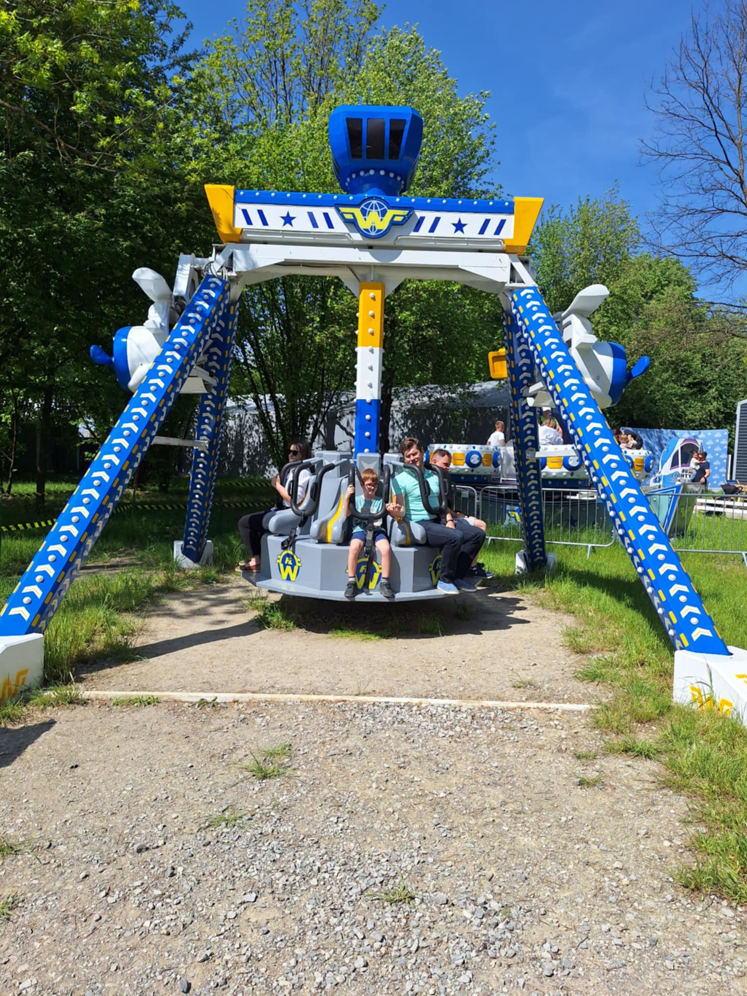 Wiele atrakcji działa bez prądu – trzeba pedałować, kręcić, pchać, żeby ruszyły! Na przykład mini kolejka napędzana siłą nóg dorosłego albo drugiego dziecka. Brzmi prosto, ale właśnie dzięki temu wszystko staje się bardziej „nasze”. To nie jest bierna rozrywka. To wspólna zabawa, która angażuje, śmieszy i łączy. I daje niezły trening przy okazji.