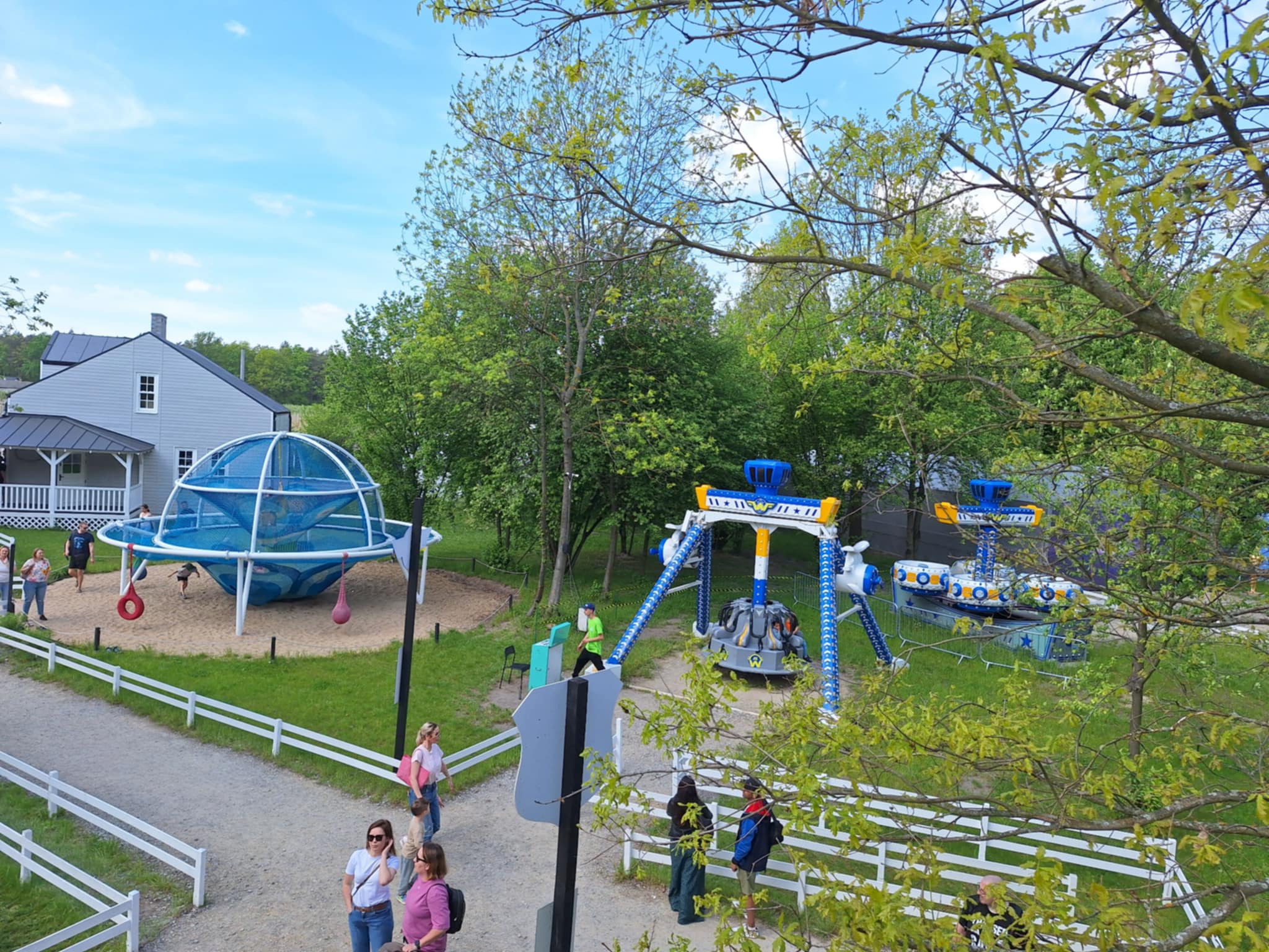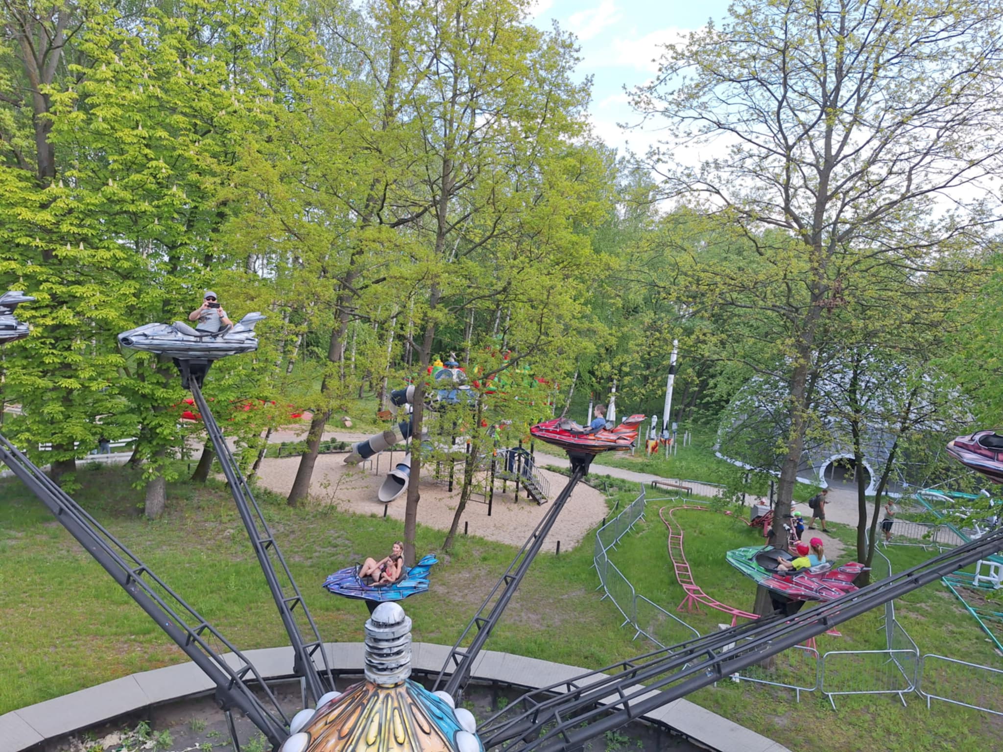 Mini wesołe miasteczko – m.in. wieża spadania GRAWITOMAT, kosmiczna karuzela, kolejka „Świnki w kosmosie”